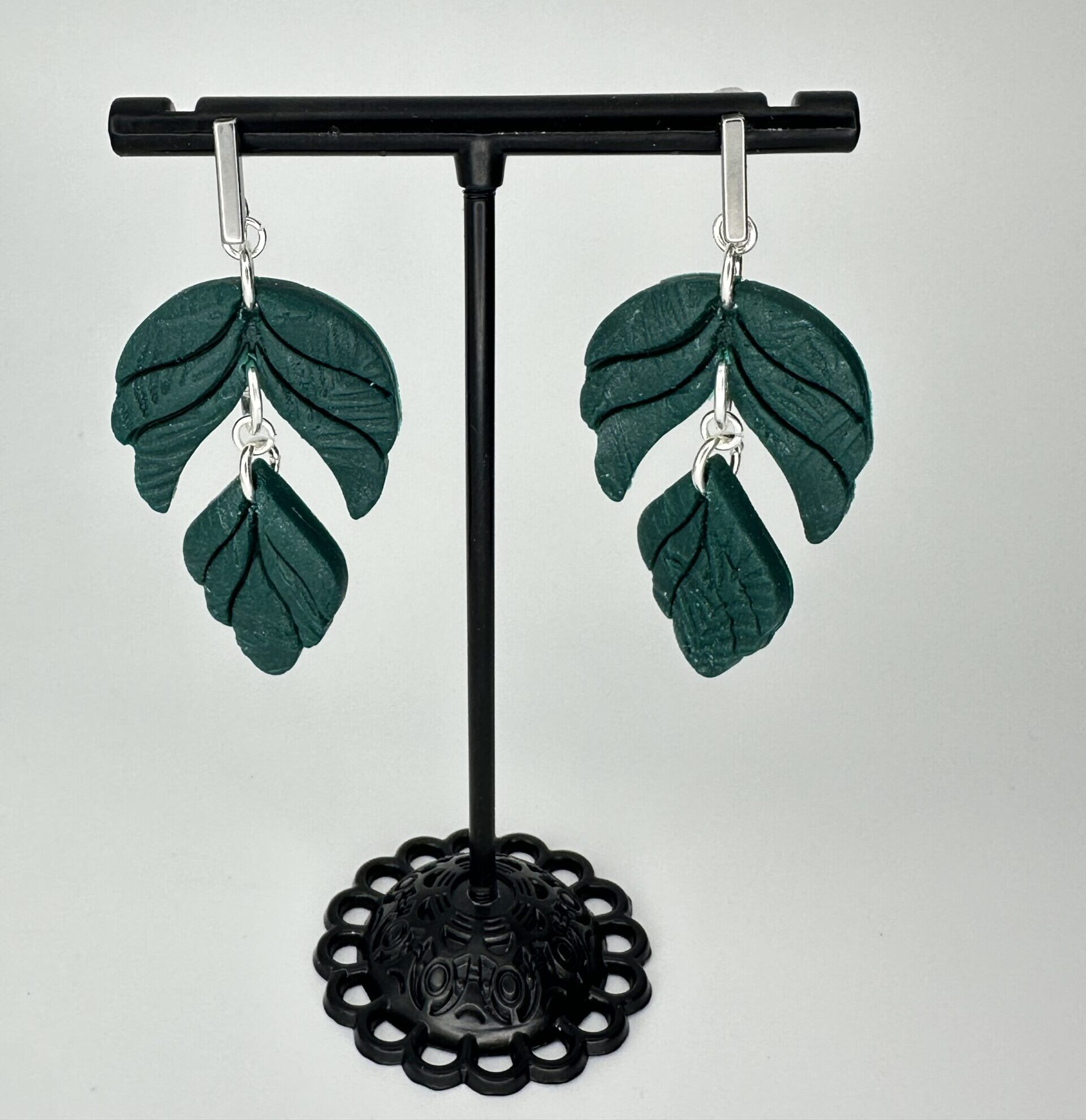 Deep emerald tones. Silver accents. Pressed texture.